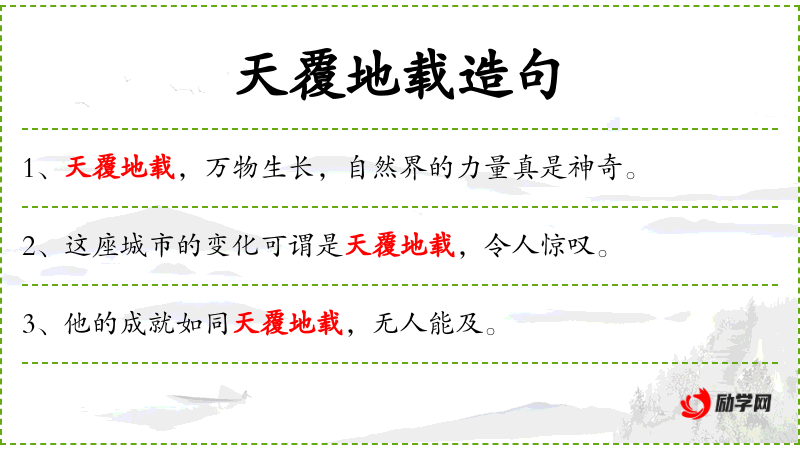 - 天覆地载:是一个成语,形容变化极大,天翻地覆。