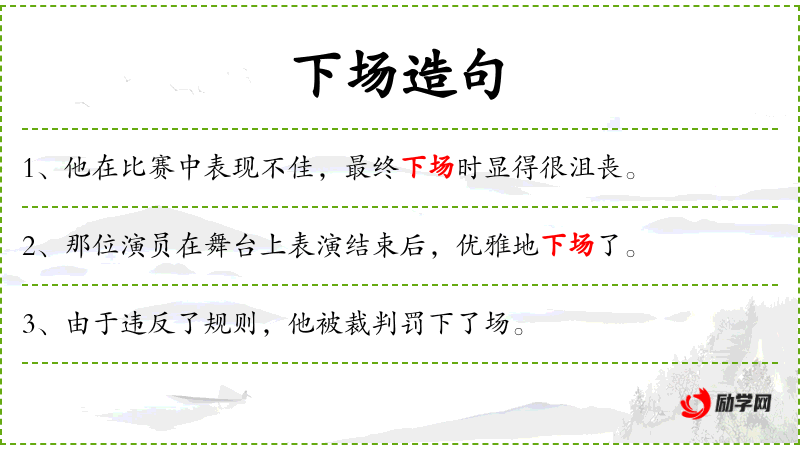 4. 【结束】 - 发展或进行到最后阶段,不再继续:秋收快要~了|代表团~了对北京的访问;装束;打扮(多见于早期白话)。