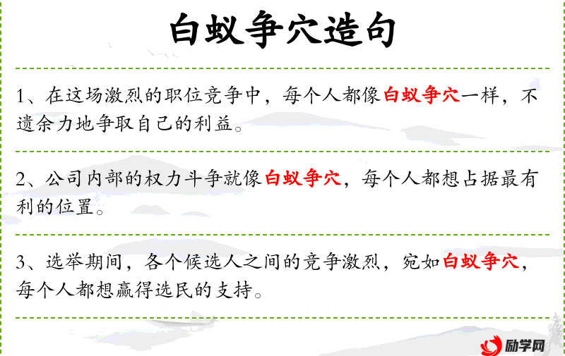 4. 【白蚁争穴】 - 比喻竞逐名利。