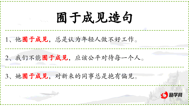 句子:“老师不应该囿于成见,要给每个学生平等的机会。”