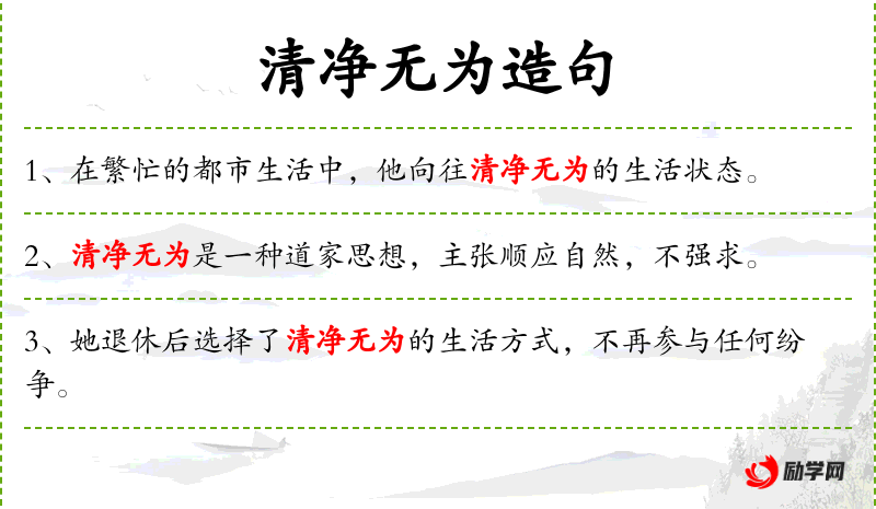 1. 【清净无为】 - 道家语。指一切听其自然,人力不必强为。