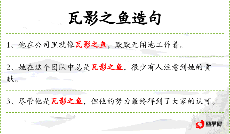 1. 【瓦影之鱼】 - 比喻求庇于人。