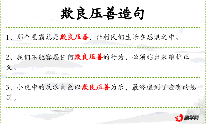 2. 【欺良压善】 - 欺:欺负。欺压善良的人。