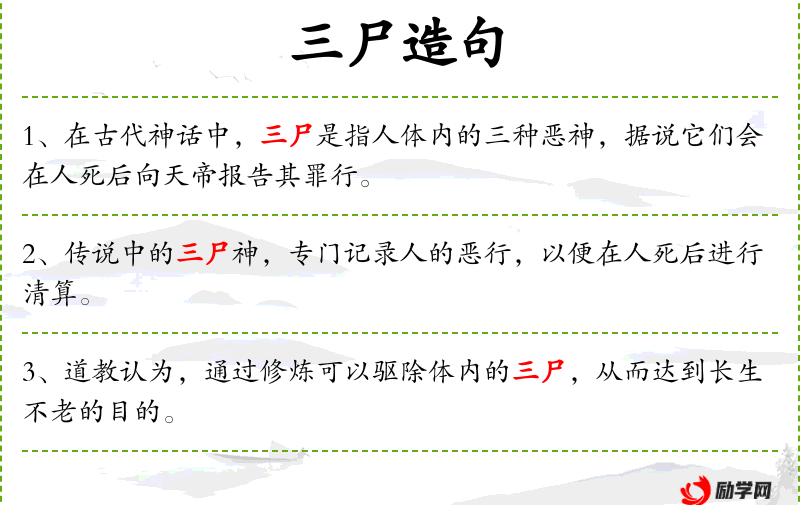1. 【三尸】 - 道家称在人体内作祟的神有三,叫"三尸"或"三尸神",每于庚申日向天帝呈奏人的过恶。