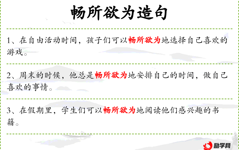 1. 【畅所欲为】 - 痛痛快快地做想做的事。