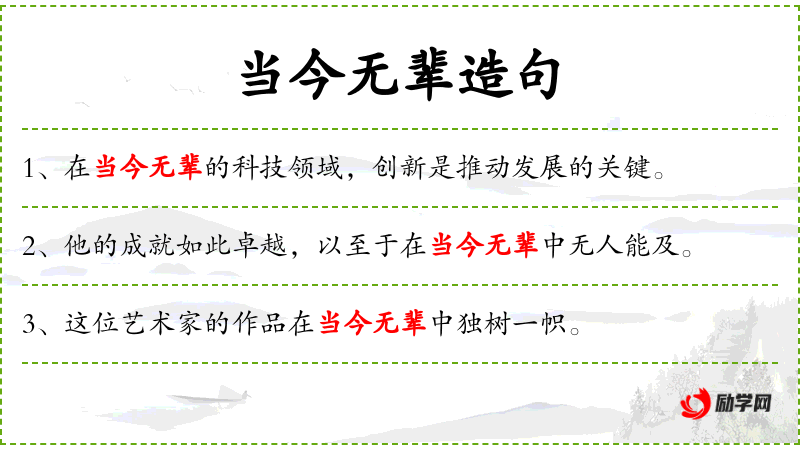 - 可以改写为:“他在当今同辈中成就非凡,无人可比。”