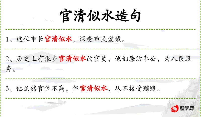 - “官清似水”:成语“清似水”形容人非常清廉,与“官”结合,强调市长的廉洁。