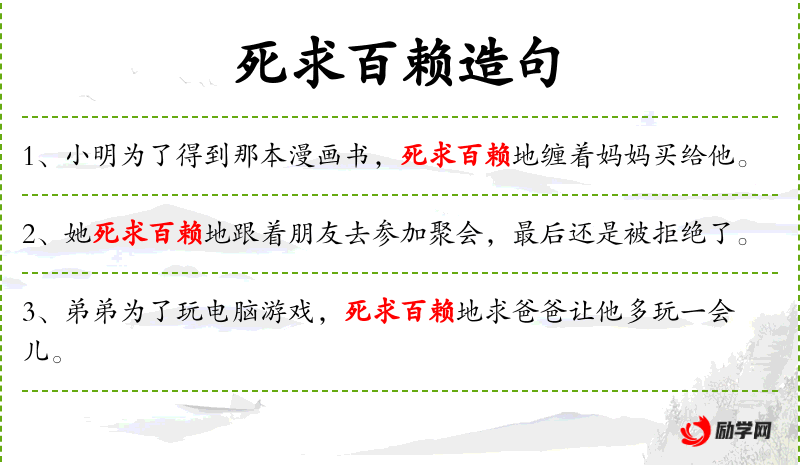 2. 【死求百赖】 - 形容纠缠不休。同“死乞白赖”。