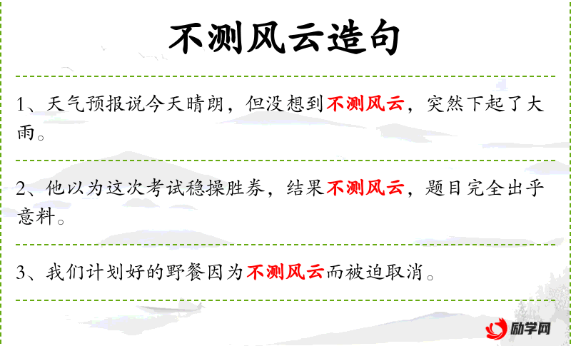 - 不测风云:这个成语源自**古代,强调事物的变化无常和不可预测性。