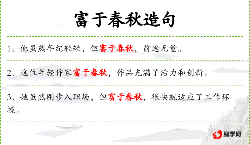 - 富于春秋的想象力:指充满活力和成熟的想象力。