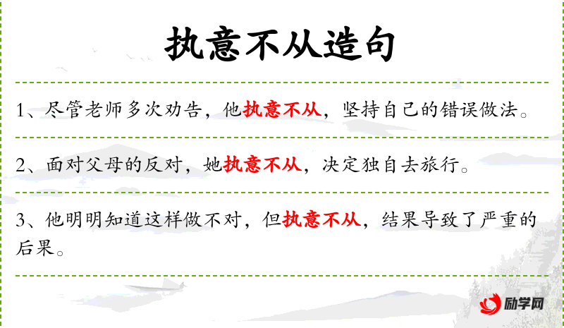 - 执意不从:坚决不听从。
