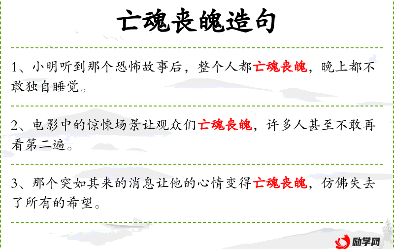 - 成语:亡魂丧魄,形容极度恐惧,源自**古代文学。
