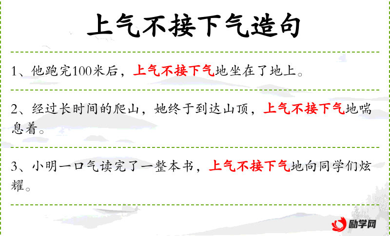 1. 【上气不接下气】 - 形容因为劳累或焦急而气喘得很厉害。