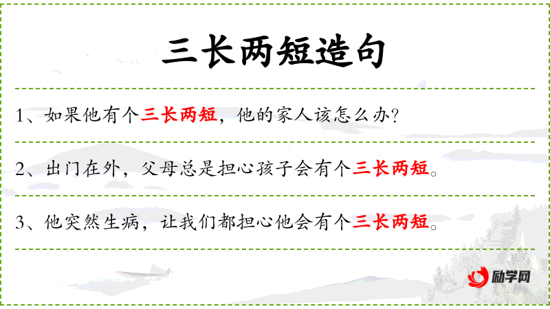 - 补语:担心他会有个三长两短