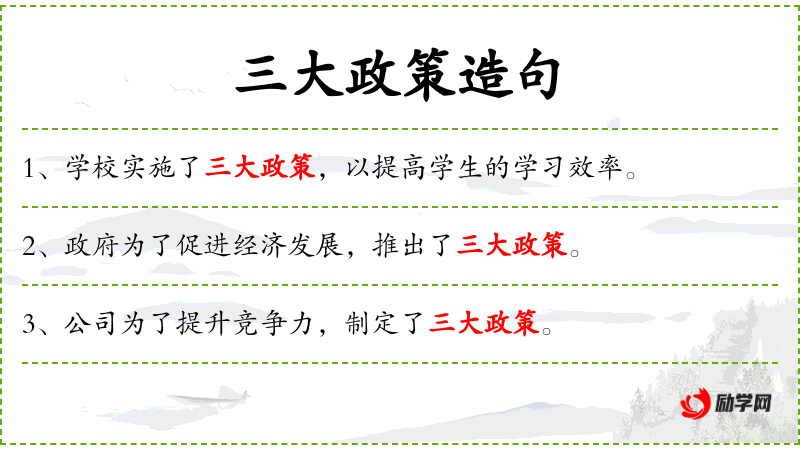 1. 【三大政策】 - 指孙中山制定的联俄﹑联共﹑扶助农工的政策。