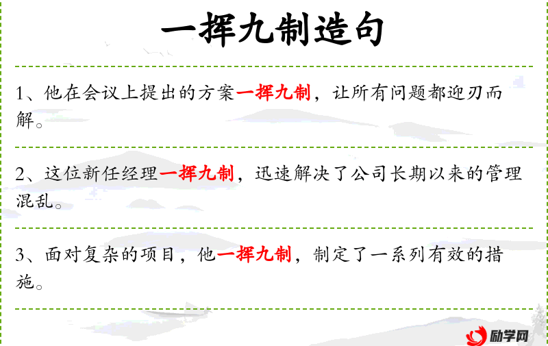 1. 【一挥九制】 - 一提笔就能写出九道制书。指文思敏捷。