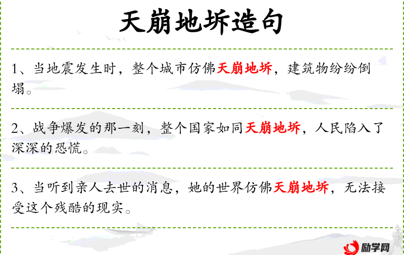 - 天崩地坼:形容极大的震动或变化,比喻极大的打击。