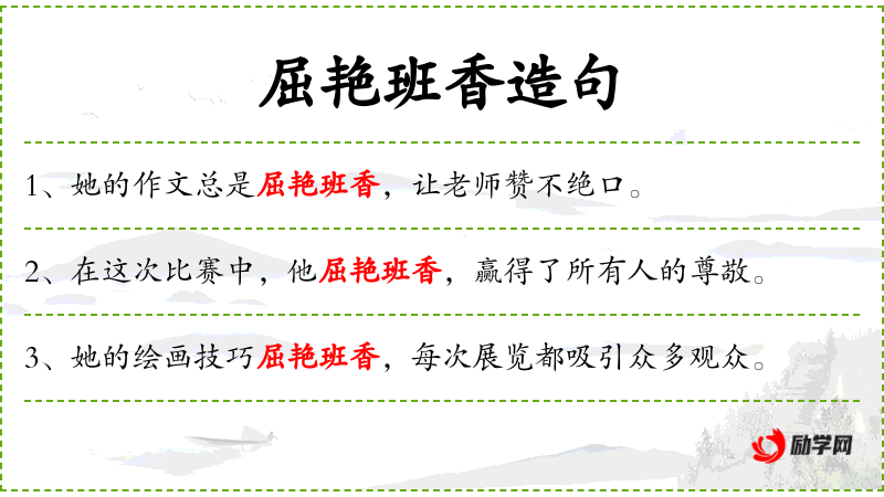 句子:“她的作文总是屈艳班香,让老师赞不绝口。”