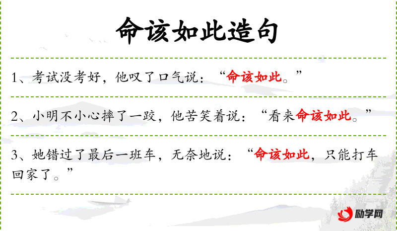 - 命该如此:成语,表示事情的结果是命中注定的,常用于表达无奈或接受现实。