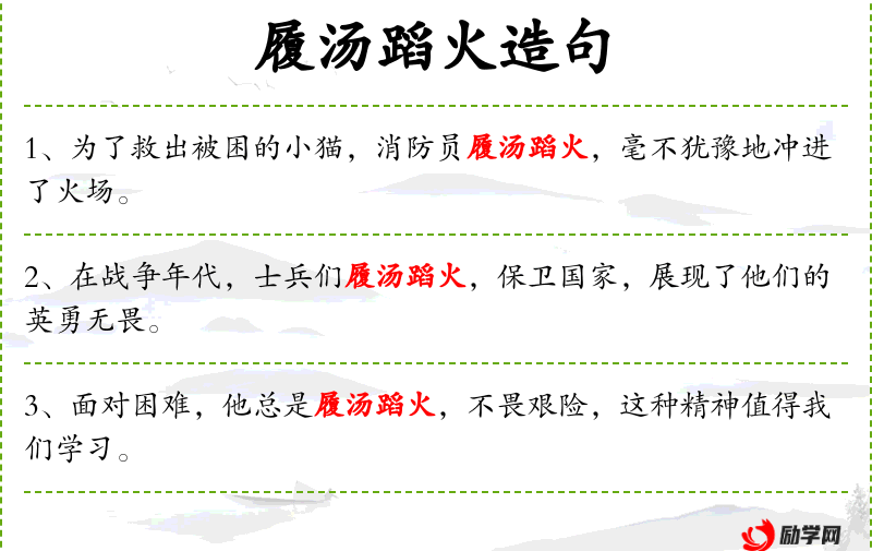 - 履汤蹈火:成语,意为不畏艰难,勇往直前。