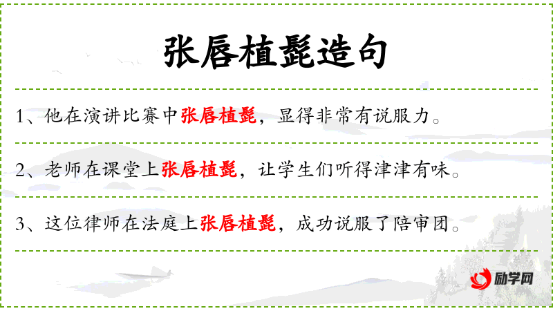 在实际交流中,这样的描述可以用来评价或赞扬某人在公开演讲中的表现。使用“张唇植髭”这样的形象描述,可以增加语言的生动性和感染力,使听众更容易想象演讲者的表现。