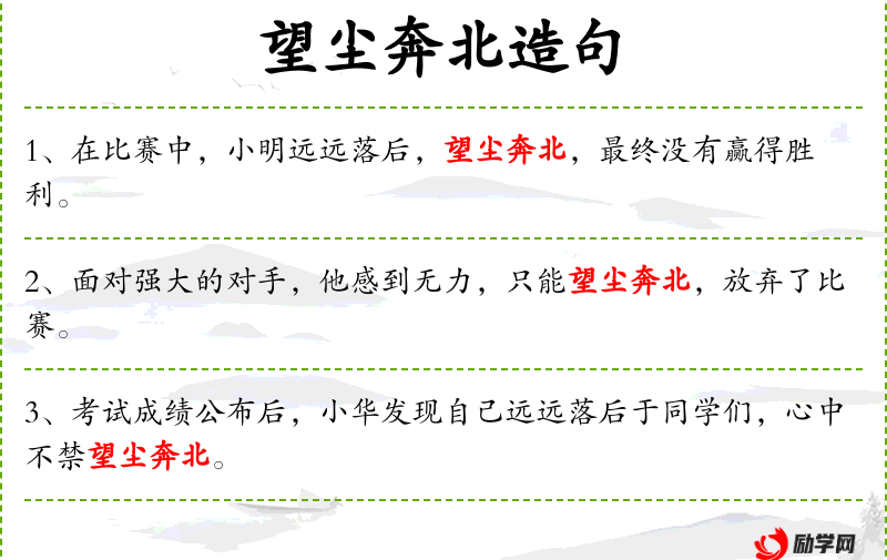 2. 【望尘奔北】 - 形容军无斗志。同“望尘奔溃”。