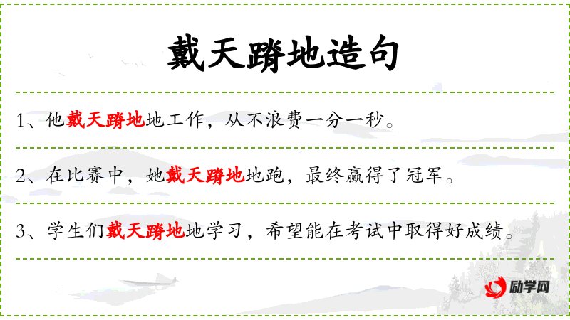 - 戴天蹐地:这是一个成语,形容非常努力或拼命的样子。