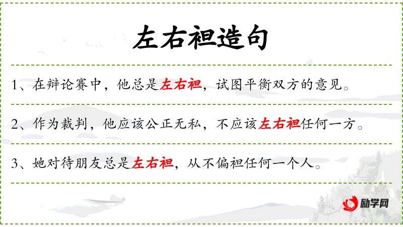 句子:“作为裁判,他应该公正无私,不应该左右袒任何一方。”