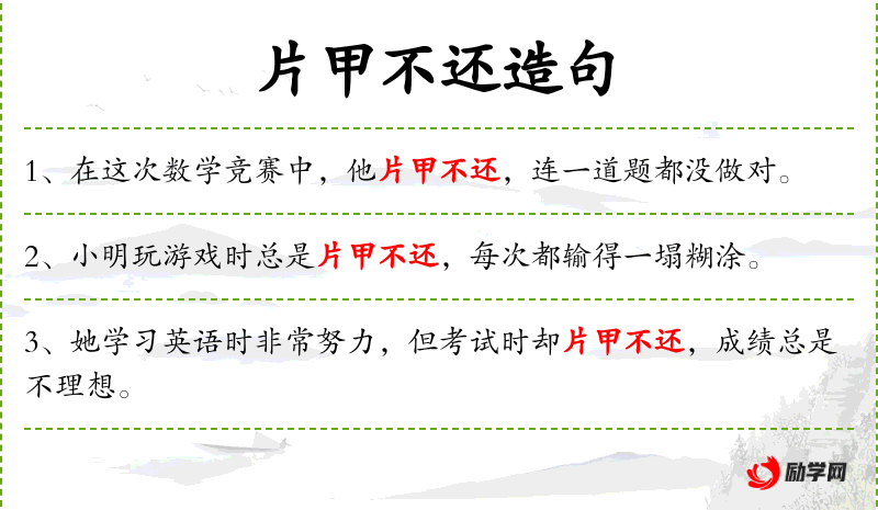2. 【片甲不还】 - 形容全军覆没。同“片甲不回”。