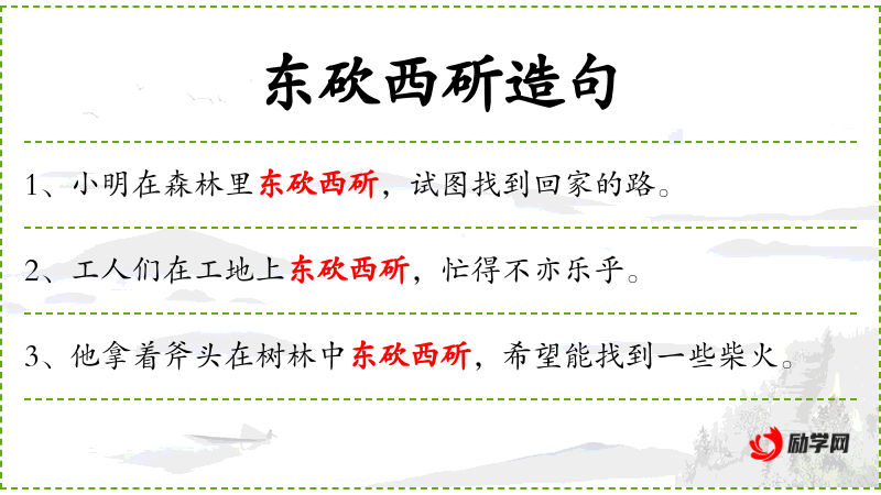 - 东砍西斫:这个成语形容动作杂乱无章,没有条理。