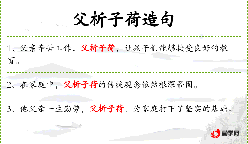 父劈柴,子担柴。比喻子孙继承父辈的未竟之业。