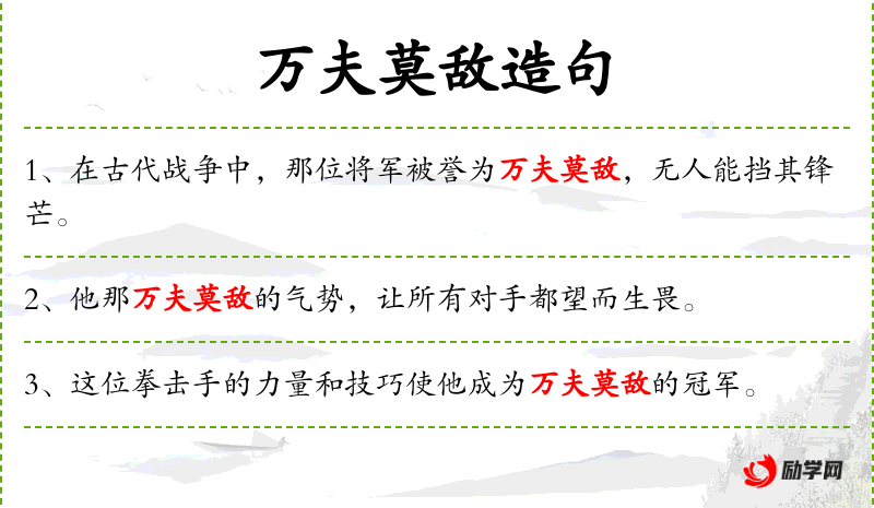1. 【万夫莫敌】 - 敌:匹敌。一万个人也抵挡不住。形容非常勇敢。