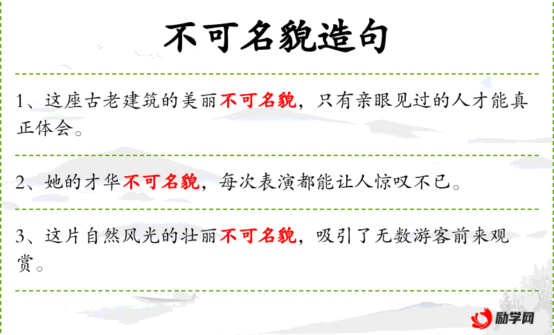 1. 【不可名貌】 - 名:说出。没法用言辞来形容。