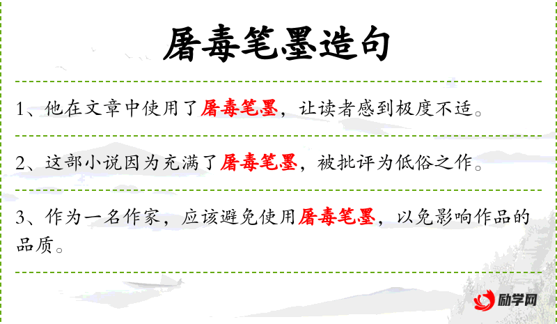 - 屠毒笔墨:比喻用词尖锐、刻*,带有攻击性。