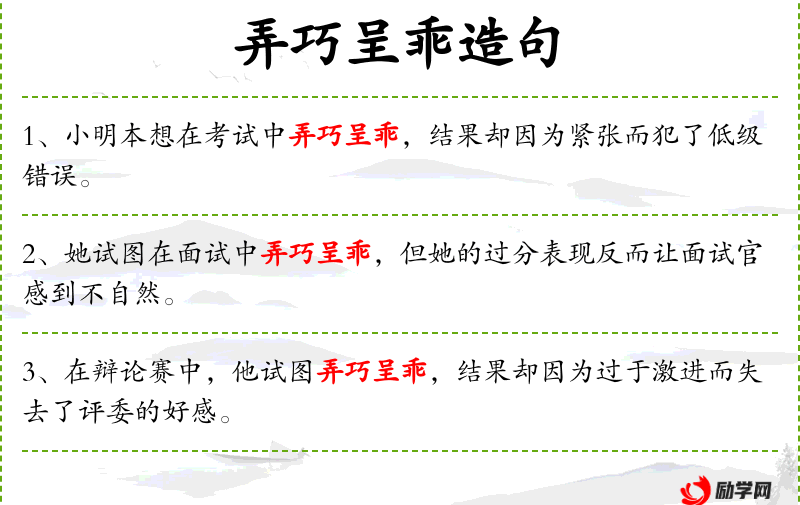 句子:“她试图在面试中弄巧呈乖,但她的过分表现反而让面试官感到不自然。”