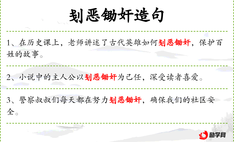 - 刬恶锄奸: 除暴安良、惩恶扬善