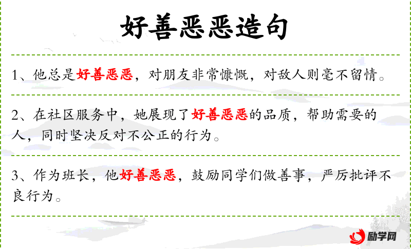 - 好善恶恶:意为喜欢做好事,厌恶做坏事。