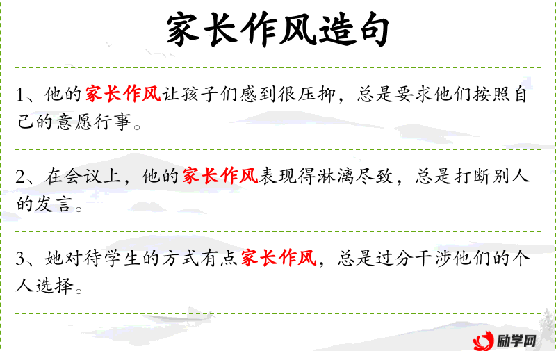 - 英文:强调了家长作风对孩子们的影响,以及家长对孩子们行为的控制。
