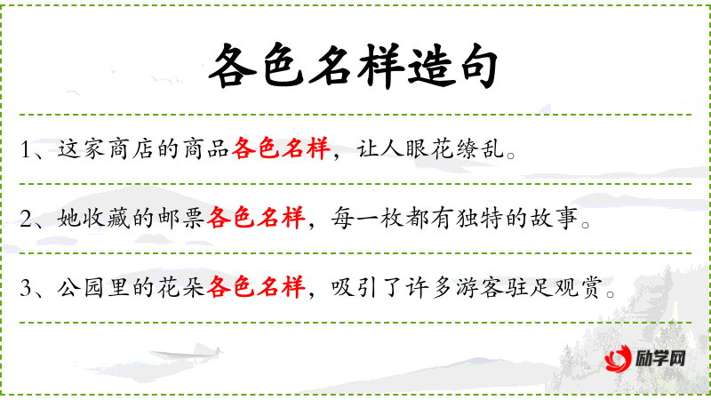 - 各色名样:形容书籍种类繁多,丰富多彩。