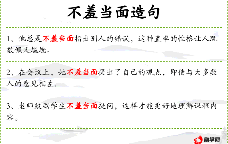 - 状语:不羞当面地
