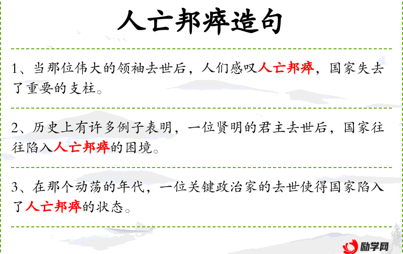 - 在教育和学术讨论中,这句话可以用于解释和扩展对“人亡邦瘁”这一成语的理解。