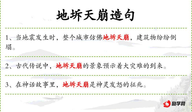 句子:“在神话故事里,地坼天崩是神灵发怒的征兆。”