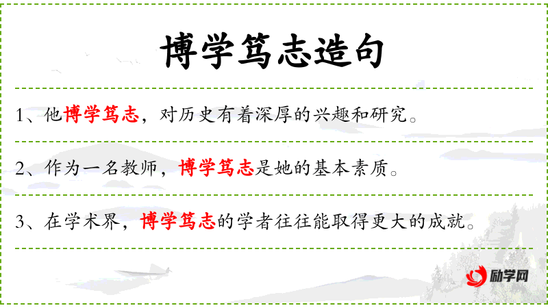 - “博学”表示知识渊博,“笃志”表示志向坚定。
