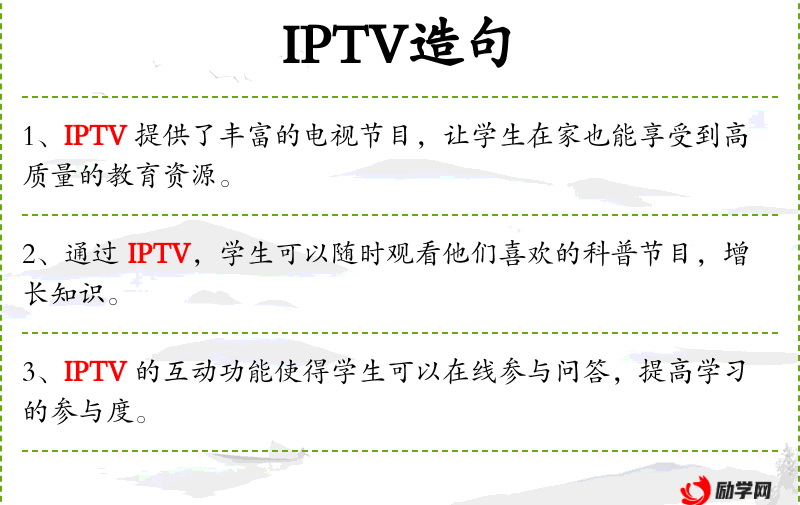 1. 【IPTV】 网络电视,是基于IP协议的电视广播服务,人们可以通过宽带网络交互式地收看电视节目。