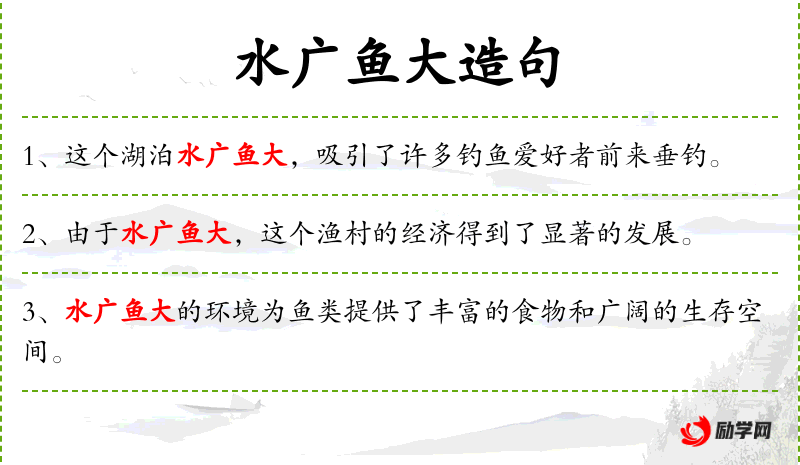 广:广大。水面宽的地方鱼肥大。比喻事物的发展由环境决定。