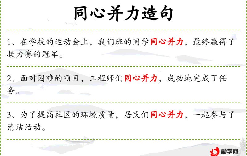 - 同心并力:形容大家齐心协力,共同努力。