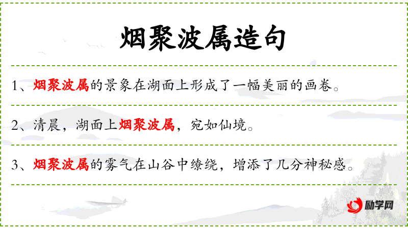 1. 【烟聚波属】 - 如烟之相聚,波之相接。比喻接连而来,聚集甚多。