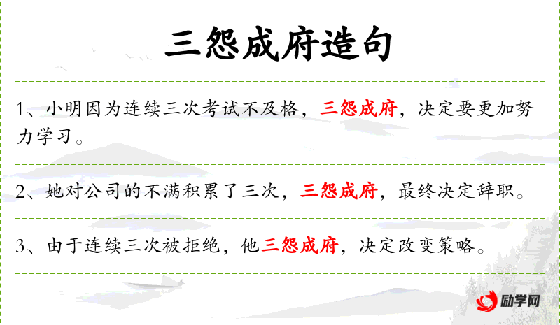 - 在实际交流中,这种表达可以用来鼓励他人面对失败时不要气馁,而是要从中学*并改进。同时,“三怨成府”这个成语的使用增加了句子的文化深度和表达的丰富性。