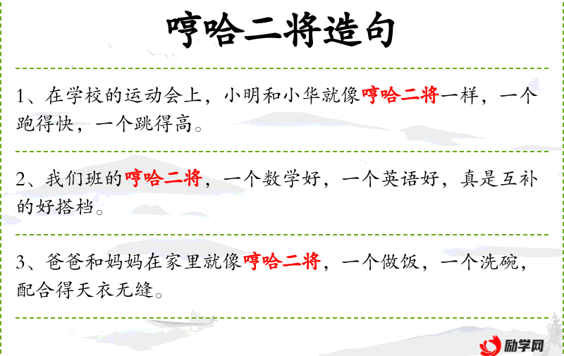- 哼哈二将:这里指的是两个人,可能是家庭成员或者室友,他们各自有不同的兴趣爱好。