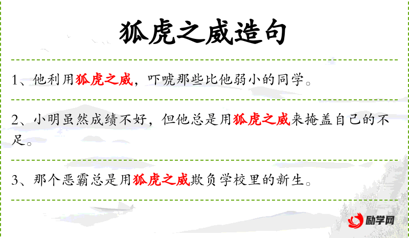 狐狸与老虎相互勾结而表现出来的威势。比喻权贵当道者与其爪牙串通一气而发出的淫威。